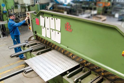 Unsere Blechschere kann Bleche mit einer Breite von 3000 mm und einer Dicke von 15 mm verarbeiten, so dass bei der Konstruktion kaum Grenzen gesetzt sind.