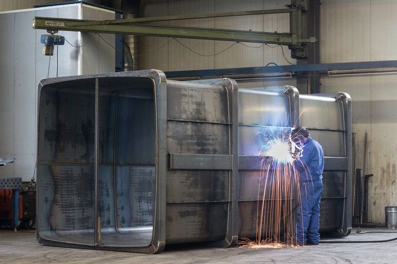 Die Fertigungsmitarbeiter verfügen über Schweißer-Qualifikationen nach ISO 9606-1 für die Verfahren MAG und WIG. Aufgrund der räumlichen Trennung von Stahl-, Edelstahl- und Aluminiumwerkstoffen sind wir in der Lage, Schweißbaugruppen unterschiedlichster Materialien herzustellen und somit unser Portfolio qualitätsgerecht abzubilden.